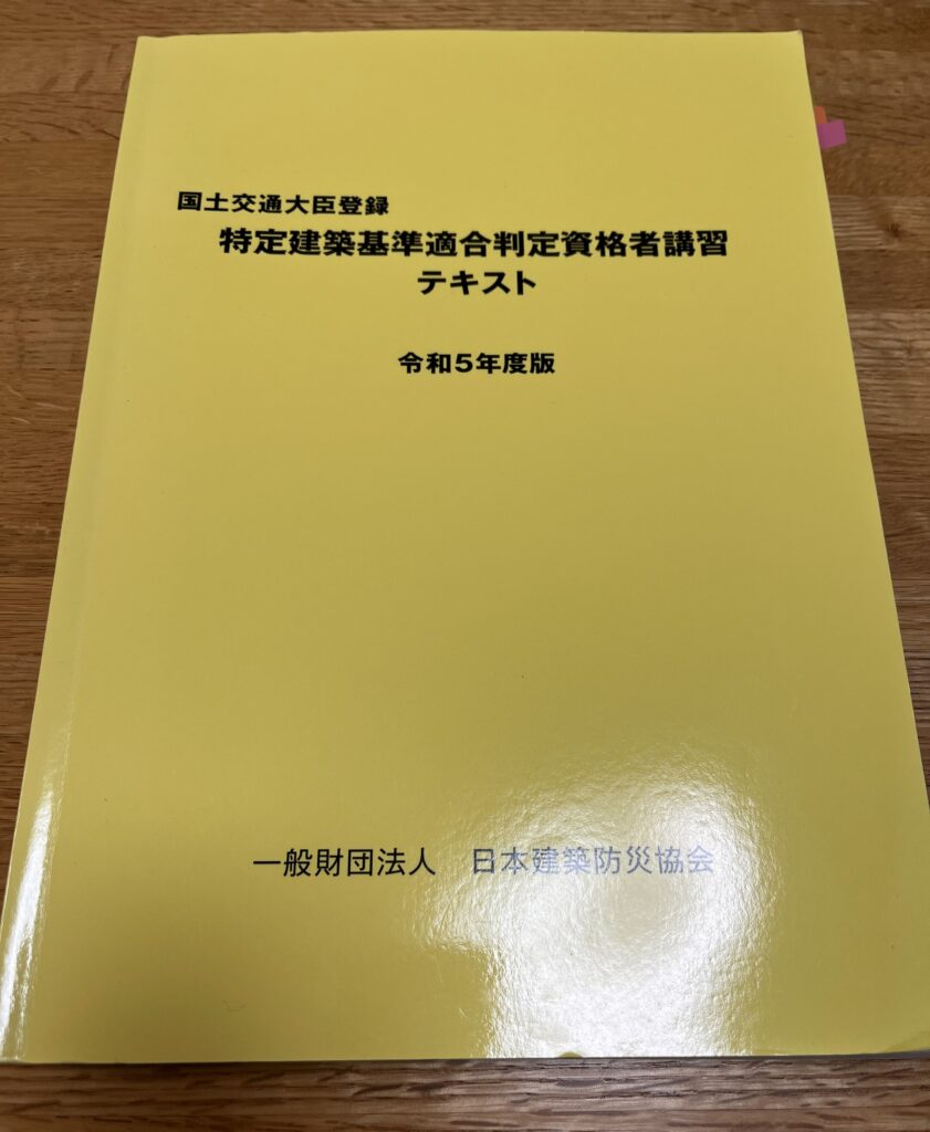 特定建築基準適合判定資格者講習テキスト(令和5年度版)は、講習開始の少し前に届きました。もし周りに講習を受けられた方がいたら、お借りするといいと思います。